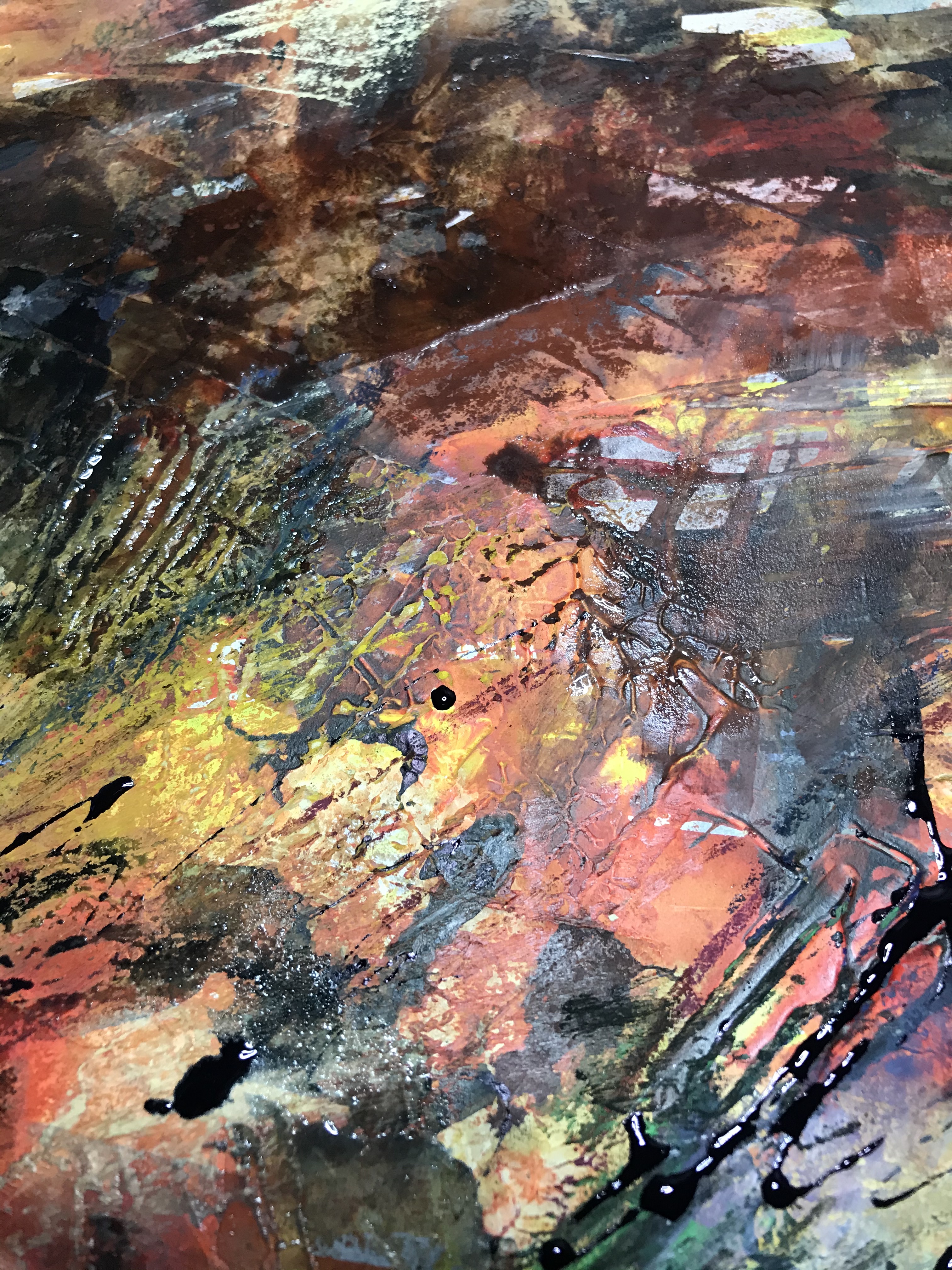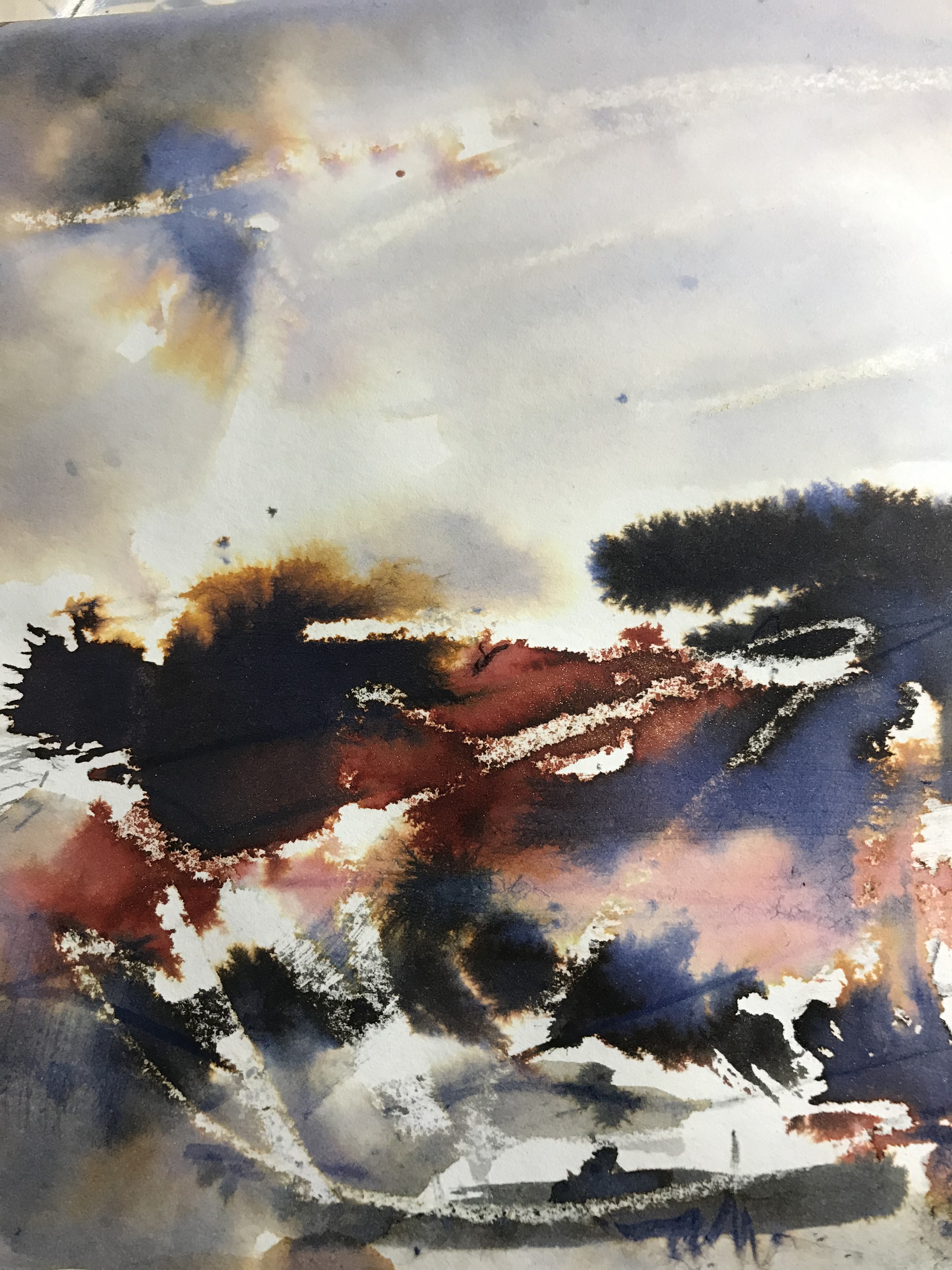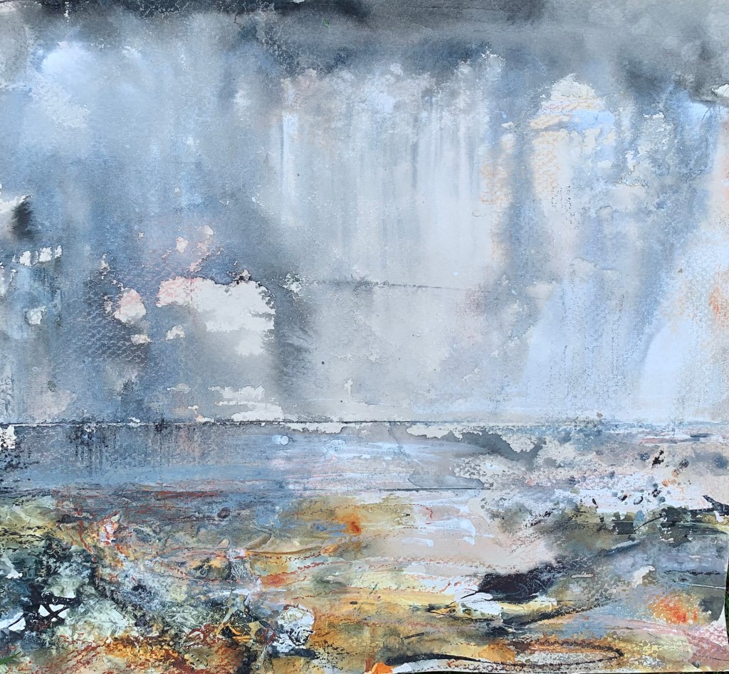 My paintings are inspired by colours and textures in the landscape, the play of light on forms and the feelings and emotions various locations evoke in me. I’m particularly interested in the contrasts nature provides; rough and smooth, dark and light, linear and curved. I try to recreate the contrasting emotions nature elicits, be it awe, joy, stillness, or fear through a combination of broad brushstrokes, textured surfaces and a variety of painting mediums.