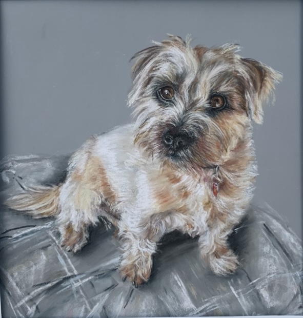 “Jane painted this beautiful portrait as a surprise birthday gift for a good friend. They were so pleased as it really caught a brilliant likeness. Sadly my friend’s dog has now departed, so the portrait will be cherished even more as a loving memory.”